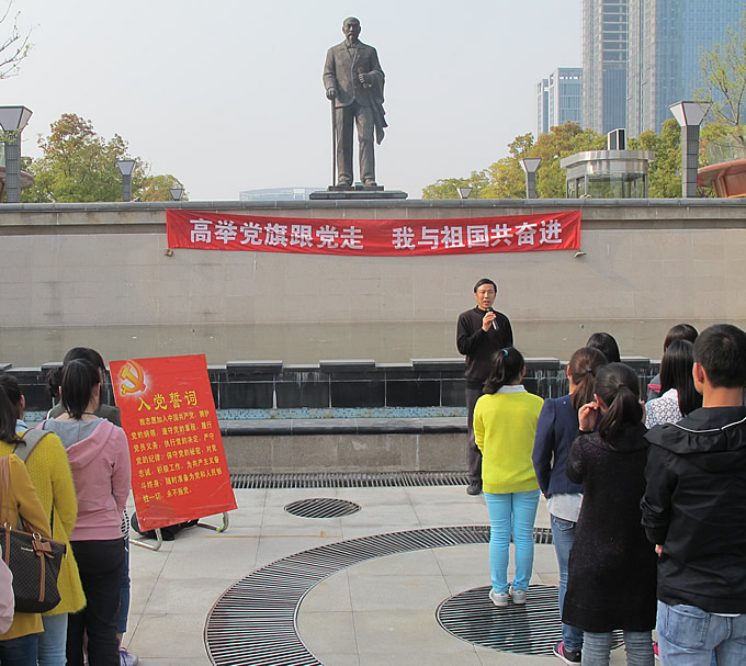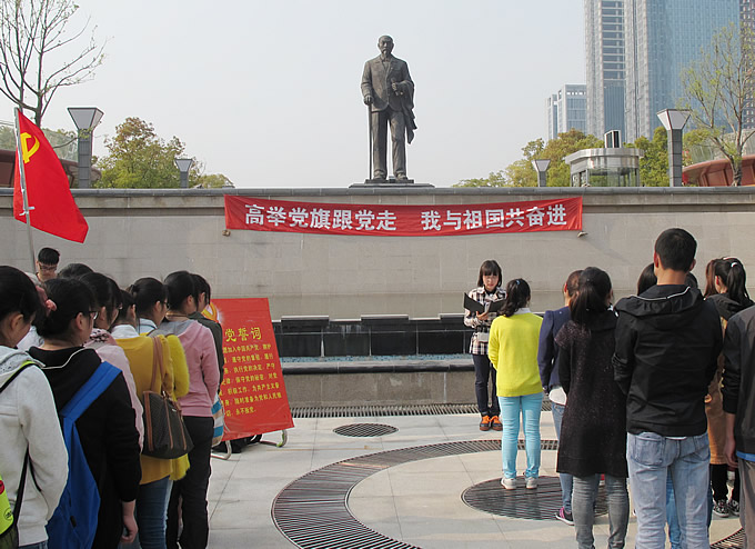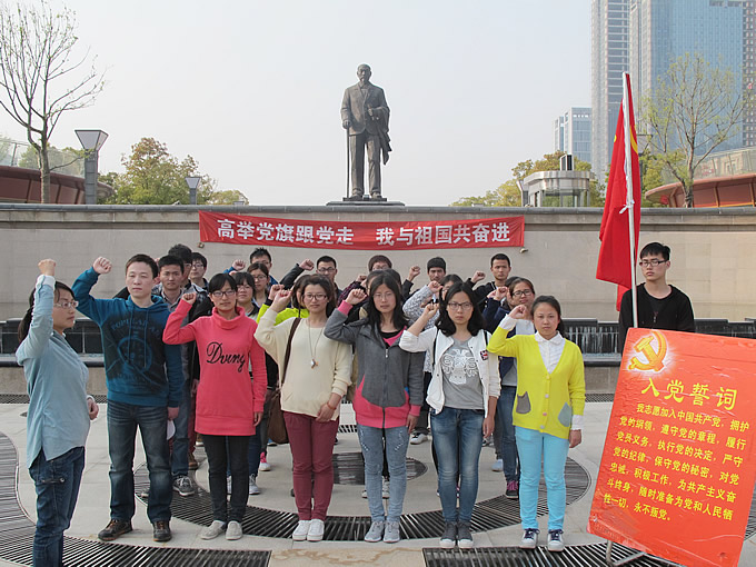 在雄浑激昂的国际歌声中,宣誓仪式拉开了序幕。在胡春花副书记带领下,新党员们宣读了入党誓词,响亮的誓言,笔直的身姿展示了他们对党坚定的信念和永不更改的忠诚。预备党员和入党积极分子代表的发言感情真挚,他们以自身的行动表明了跟党走的决心。最后,陶书记勉励同学们要孝亲尊师,知恩报恩;作为一名党员和入党积极分子,要断恶行善,服务大众;要用党的理论知识武装自己,高举党旗,跟着党走。最后,同学们参观了中央公园系列雕塑,对南通张謇、沈寿等历史名人事迹和南通刺绣、蓝印花布等特色民俗文化有了比较全面的了解。此次活动增进了同学们对党的认识,他们表示会响应党的号召,遵从党的指示,更加努力学习,报效祖国。(生命科学学院)