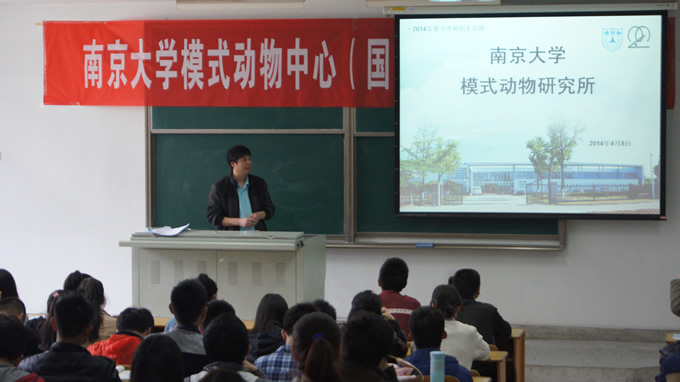 4月29日下午,南京大学模式动物中心(国家级)受邀来院开展“夏令营推介会”,博导赵庆顺教授担任主讲,活动由院长谭湘陵教授主持,学院11级全体学生和12级部分学生参加。