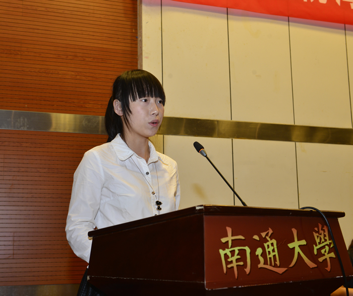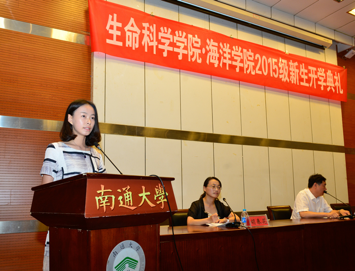 2013级生物工程专业汤晓璇同学代表老生发言,与学弟学妹们分享了她两年大学生活的收获和感悟。2015级生物工程专业李岩同学代表新生发言,表示全体2015级同学将在未来四年大学时光里相互帮助、勤奋学习、以优异的成绩为南通大学增光添彩。