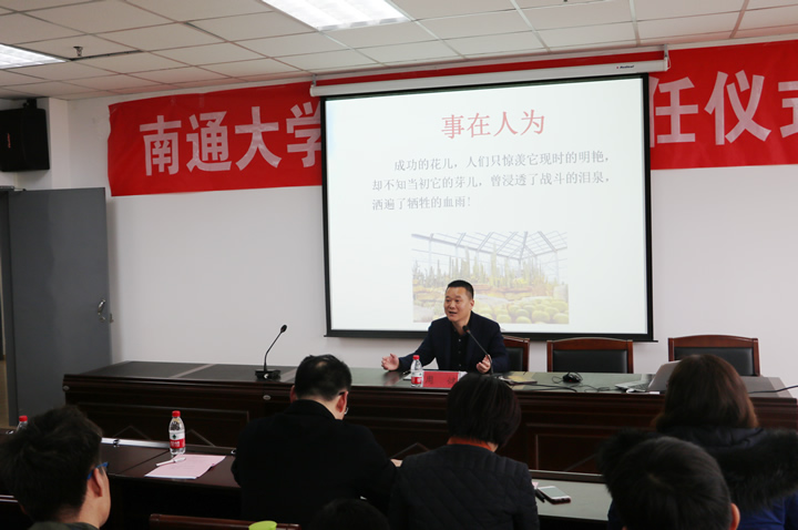 3月24日,学生工作处、生命科学学院邀请南通洲际绿博园有限公司董事长周健先生来校举办创业辅导讲座并举行创业导师聘任仪式。聘任仪式由生命科学学院党总支书记吉明明主持。学生工作处处长贲智勤、副处长姚春雷、生命科学学院副院长、副书记胡春花、通州区先锋街道人大工委主任马迎霞出席活动。