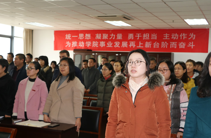 院长姚登兵向大会作了题为《统一思想 凝聚力量勇于担当 主动作为,为推动学院事业发展再上新台阶而奋斗》的工作报告。报告总结回顾了学院近五年在党建和思政教育管理、人才梯队和师资队伍建设、学科建设和科研工作推进、办学水平和人才培养质量提升、内部管理体制完善、国际交流合作拓展等方面取得的成绩,深刻分析了学院发展面临的挑战和机遇,对学院2019-2025年的发展目标和任务举措进行了展望和规划。他指出,学院将深入贯彻“办学思路协同创新、学科发展特色鲜明、人才培养质量一流、文化建设健康高雅”的发展原则,全面深化改革,推进学院目标管理,加强内涵建设,切实提升学院的科研实力和水平,努力实现学院发展的提质增效,奋力推动各项事业迈上新台阶。