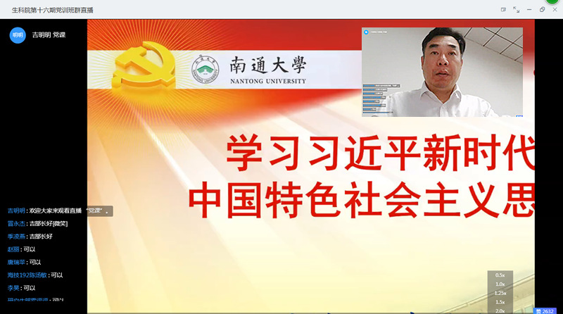 5月27日晚,校党委常委、宣传部部长吉明明应邀为生命科学学院第十六期党员发展对象培训班学员线上讲授主题为“学习习近平新时代中国特色社会主义思想”的党课。