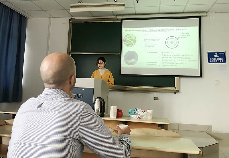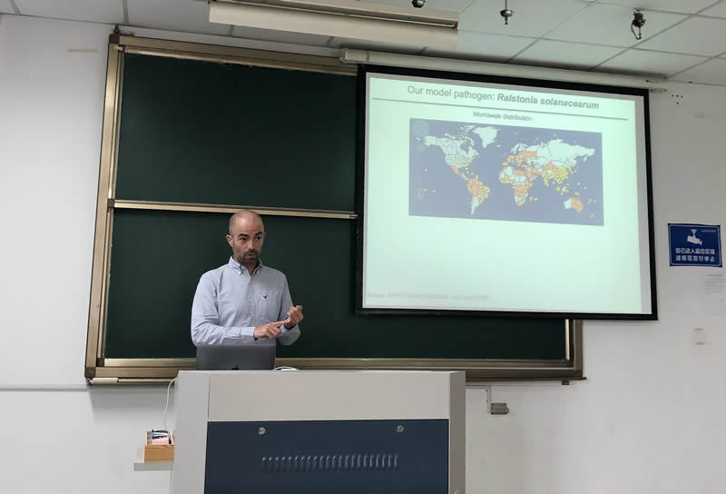 5月26日中国科学院分子植物科学卓越创新中心首席研究员、博士生导师Alberto Pablo Macho研究员应邀来我院,与我院农用微生物实验室的师生进行学术交流。Alberto Pablo Macho研究员主要研究植物病原细菌引起的生物胁迫的分子基础及植物抗病机制。
