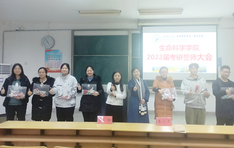 为鼓舞考研士气,稳定考试心态,增强迎考信心,12月6日下午,生命科学学院开展考研誓师大会暨为考研学生送温暖活动。院党委书记季凌燕,党委副书记、副院长金玲以及2022届考研学生参加活动。