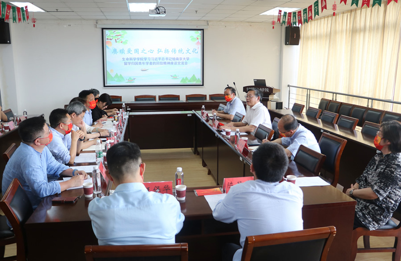 6月3日下午,生命科学学院召开“赓续爱国之心、弘扬传统文化”座谈交流会,学习《习近平给南京大学留学归国青年学者的回信》。校党委书记浦玉忠,党委常委、副校长杨宇民应邀参加活动。