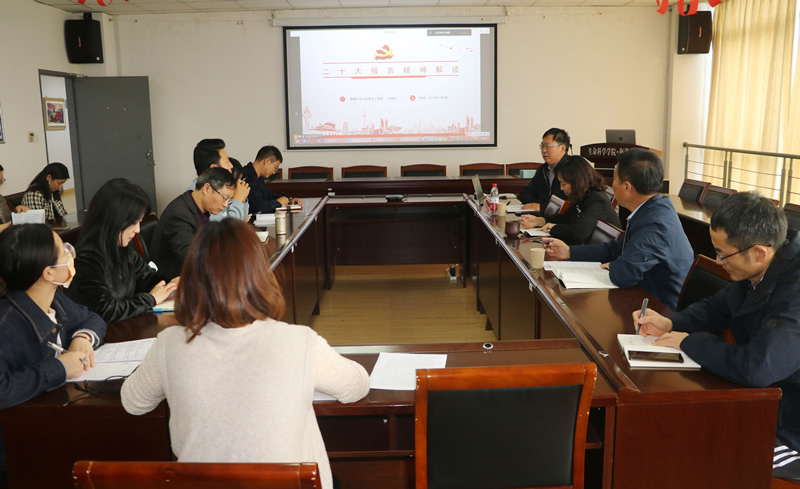 会议邀请马克思主义学院王明华教授作《党的二十大报告精神解读》专题辅导报告。王教授从二十大的基本情况和大会主题、二十大报告的理论创新和突出亮点、如何深入学习贯彻落实二十大精神三个方面阐述了二十大报告的深刻内涵和重大历史里程碑意义,为全体与会人员学深悟透二十大精神提供了专业指导。