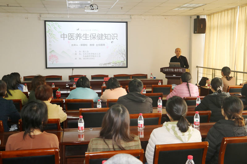 为满足广大教职工的健康需求,丰富中医保健养生知识,倡导科学、文明、健康的生活方式,3月8日下午,校工会联合公共卫生学院分工会、生命科学学院分工会举办《中医养生保健知识》讲座,邀请南通大学附属医院中医科主任郭爱松教授担任主讲嘉宾。生命科学学院党委书记季凌燕主持活动。