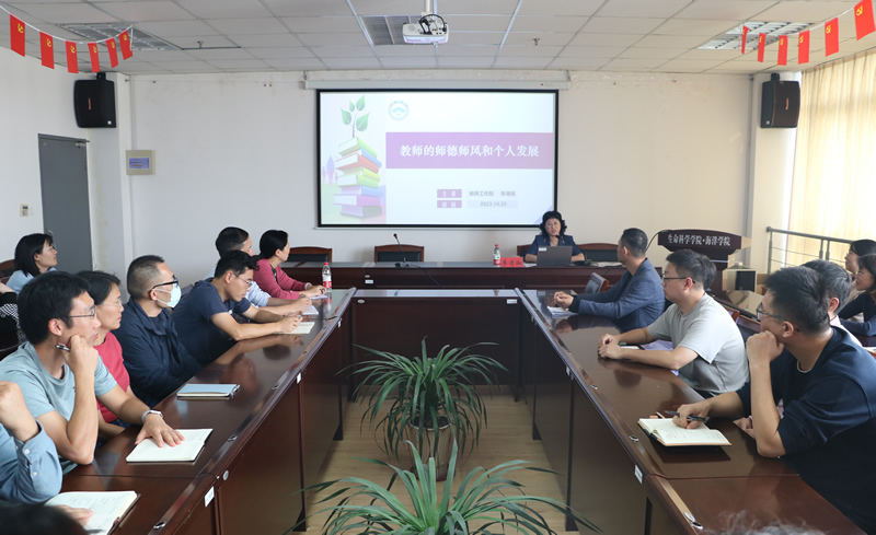 李部长以“教师的师德师风和个人发展”为主题,对标“四个好老师”、“四个引路人”,从国家社会需要、教育根本任务、教师自身需求三个方面深入剖析了新时代高校师德师风建设的宏观背景和重大意义,解读了高校师德师风建设的重要政策文件,并结合近年来高校师德负面清单和公开曝光的师德师风失范典型案例,明确了高校教师师德师风建设的规范和遵循。同时她结合学校近几年人才引培工作的经验和成效,对全体教师特别是青年教师的个人成长提出了建议,鼓励全体教师以时代楷模张桂梅等优秀教师为榜样,忠诚于党的教育事业,奉献于人民教育事业。