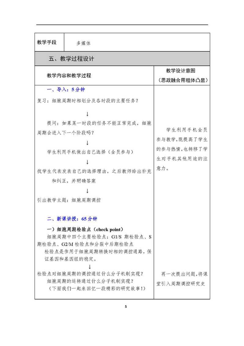 细胞生物学“课程思政”教学设计案例