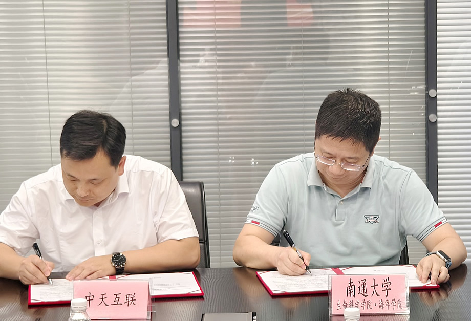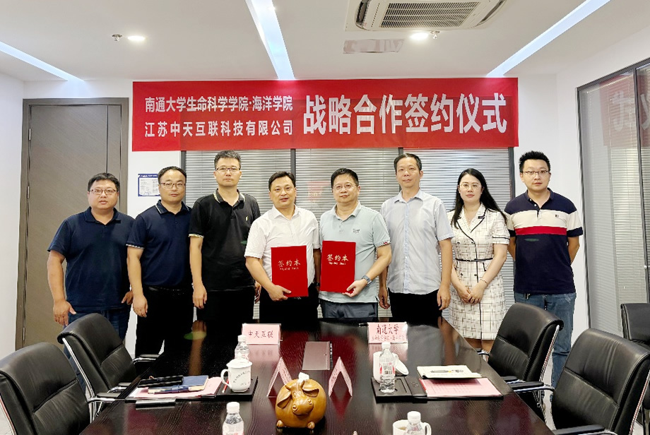 为加强校地之间的交流与合作,9月10日下午,南通大学生命科学学院(海洋学院)副院长张健一行前往江苏中天互联科技有限公司,与公司总经理时宗胜等进行战略合作洽谈。