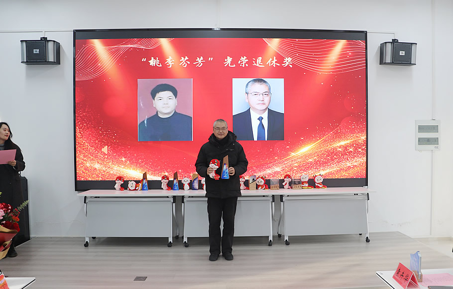 副书记、副院长金玲为王兆慧和朱新宇老师颁发了“桃李芬芳”光荣退休奖,她深情回顾了两位老师的工作历程,高度评价了他们在教学、科研以及学生培养等方面的卓越成就,感谢他们多年来为学院做出的杰出贡献。两位老师手捧奖杯,脸上洋溢着幸福的笑容,表达了对学院未来发展的美好期望。