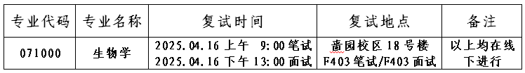生命科学学院2025年硕士研究生招生调剂复试时间安排表(第二批)