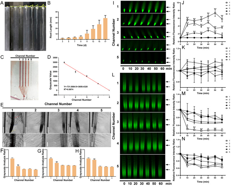 近日,生命科学学院孙利军教授团队在著名期刊《Plant, Cell & Environment》发表题为“A Newly Established Micro-Millifluidic Chip for Real-Time Monitoring of Arabidopsis Root Responses to Salinity Stress”的简要通讯类文章,报道了一种新型微毫流控芯片的开发及其在拟南芥根系对盐胁迫响应监测中的应用。团队精心设计了一种用于研究拟南芥根系的集成微流控芯片,其微流控部分能够输送并维持培养溶液的精准控制,而流控部分则为根系生长提供了充足的生长空间利用该芯片可实时监测根冠的脱落、根毛生长和侧根形成的动态过程。论文还探究了不同盐浓度胁迫条件下,根系对盐胁迫的响应以及生长素(DR5::GFP)的分布和极性运输(Pin2::GFP)的改变,传统的研究方法相比,团队构建的新型流控芯片不仅为根系的长期生长提供更多空间,而且实现了培养溶液浓度梯度的精确生成和控制为植物根系形态和生理反应的高时空分辨监测提供了全新的研究策略