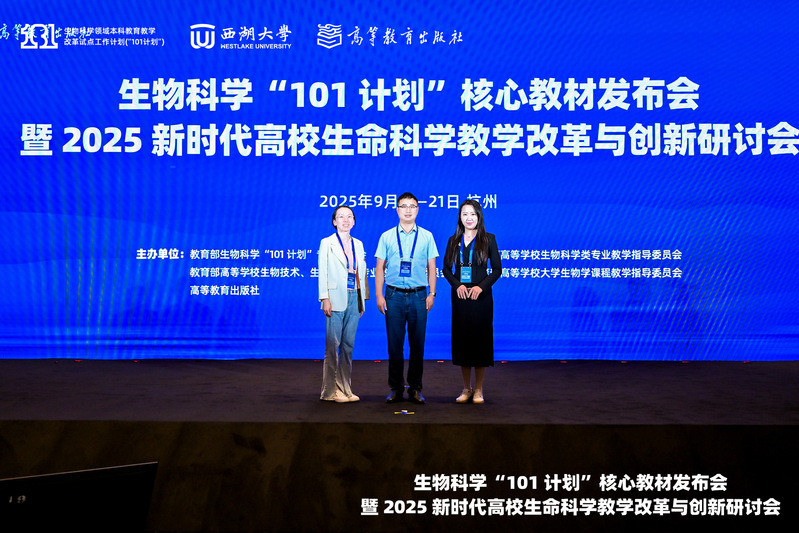 9月20-21日,生物科学“101计划”核心教材发布会暨2025新时代高校生命科学教学改革与创新研讨会在杭州顺利召开。该计划由西湖大学校长施一公教授牵头,西湖大学作为牵头单位,联合全国32所生物科学拔尖学生培养基地所在高校共同推进。会议由教育部生物科学“101计划”专家委员会、教育部高等学校生物科学类专业教学指导委员会、教育部高等学校生物技术与生物工程类专业教学指导委员会、教育部高等学校大学生物学课程教学指导委员会以及高等教育出版社联合主办。